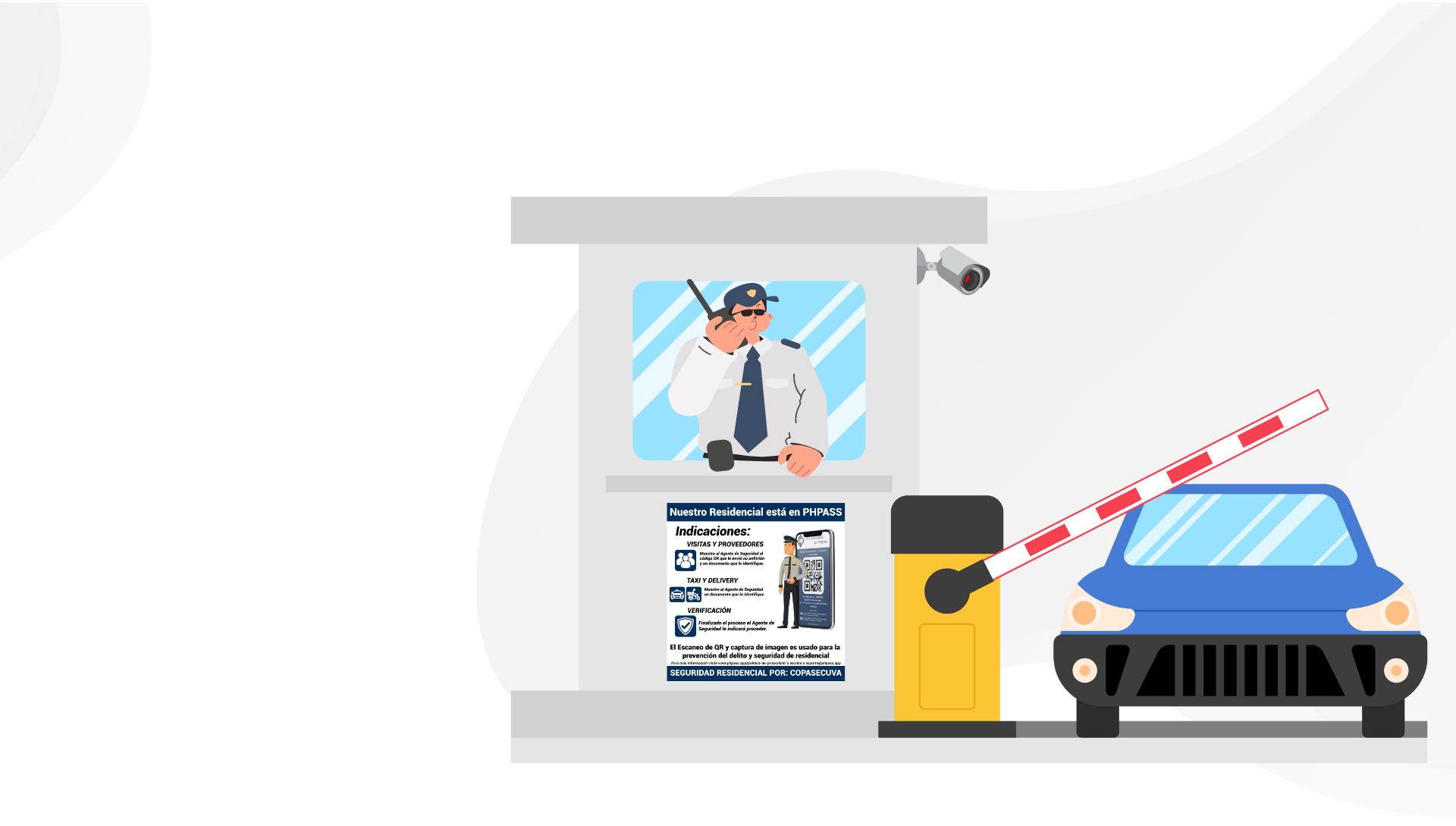 PHPass ofrece un panel de control para los administradores, un panel de control para el supervisor de seguridad, una interface App para los residentes / usuarios y una interface App para los agentes de seguridad.